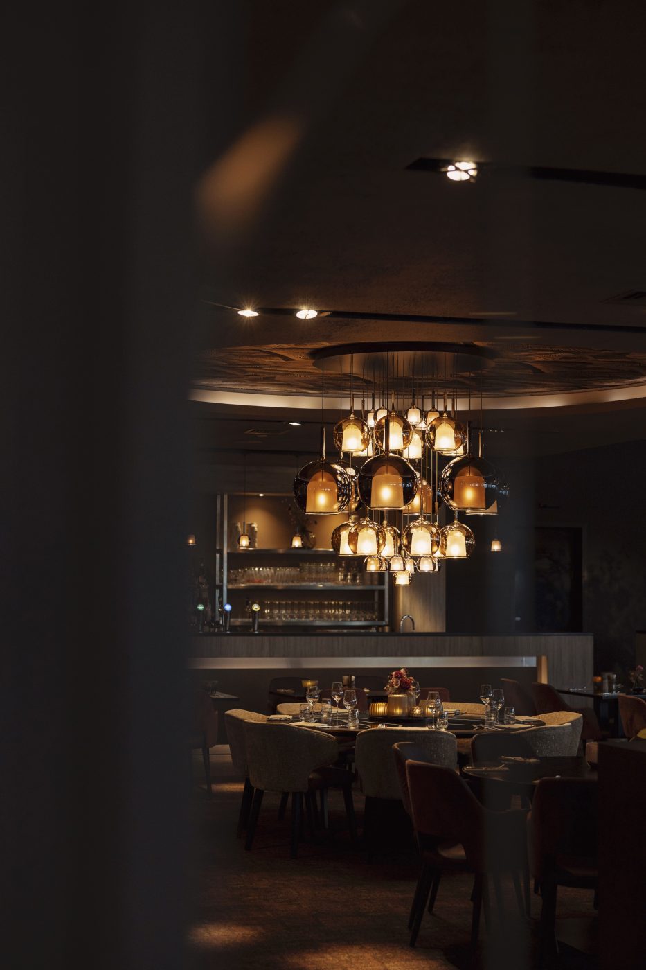 Lampade con struttura in metallo cromato lucido e vetro borosilicato.
