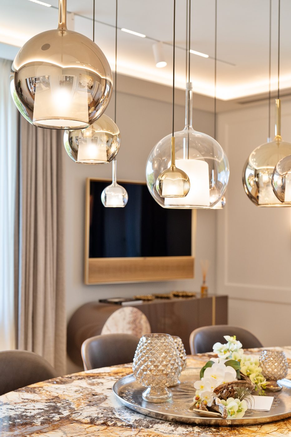 Lampade con struttura in metallo e diffusore in vetro borosilicato. Struttura cromo lucido e diffusore esterno in vetro borosilicato trasparente o argento. Struttura oro lucido e diffusore in vetro borosilicato oro o 4ever. Struttura nero opaco e diffusore esterno in vetro borosilicato nero. Diffusore interno sabbiato.